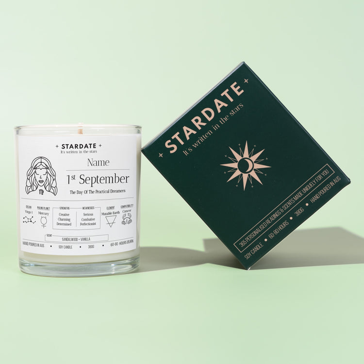 Personalised candles based on your birthdate. Astrology, tarot and numerology readings are uniquely written for 365 days of the year, including for your Virgo zodiac. These are the best personalised gifts for those born between August 23 - September 22 with a Virgo star sign.