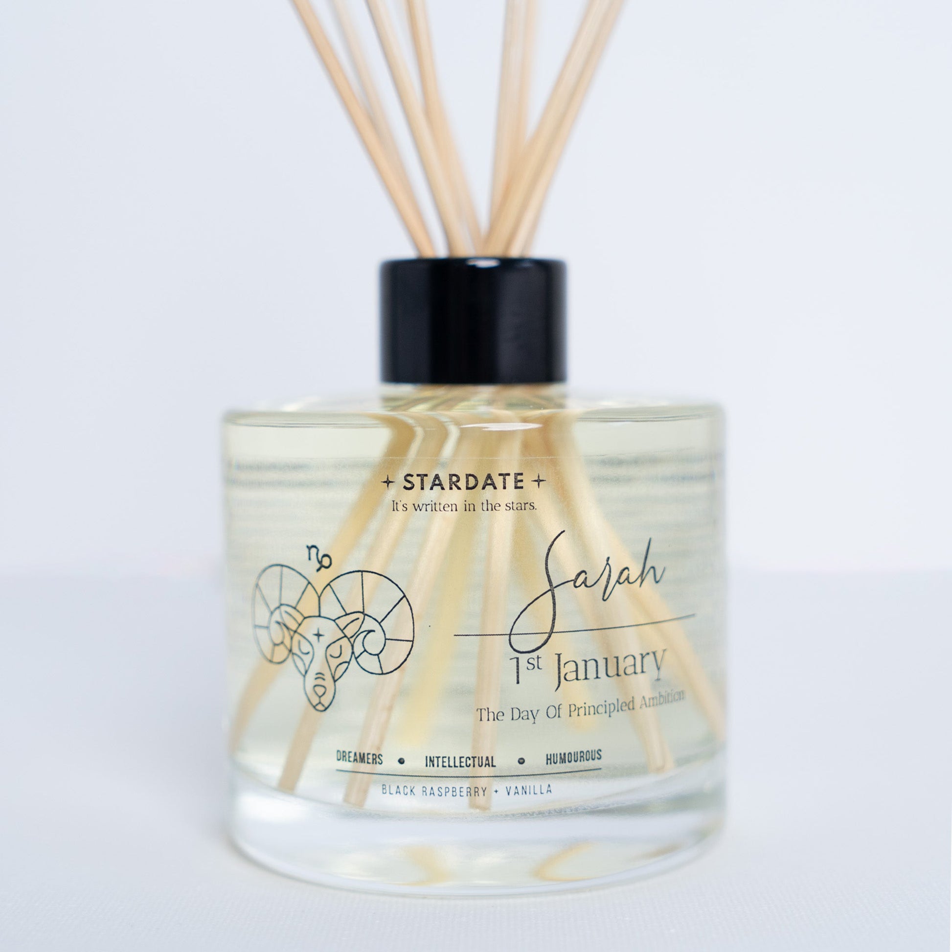 What sets us apart? It's not just the delightful aromas that dance through the air, but the personal touch we bring to each diffuser. Imagine the joy on your loved one's face when they see their name, birthday, and a unique astrological reading on their very own Stardate Reed Diffuser.