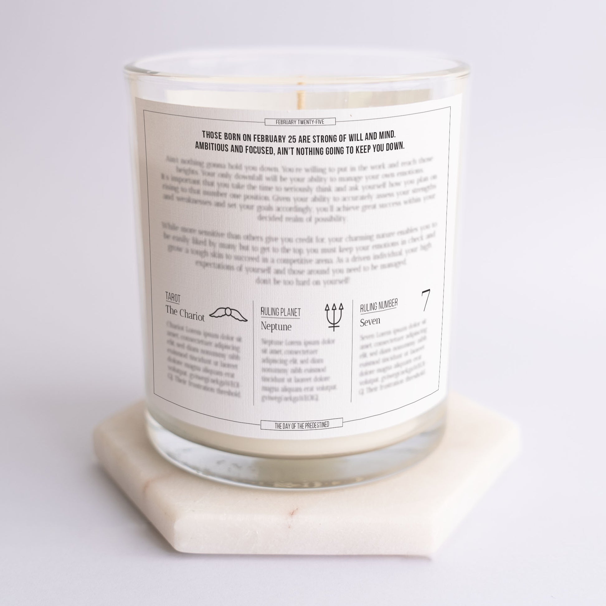 Lavender & Ylang Ylang, a floral scent that embodies the highly intuitive, sensitive and empathetic qualities of those born on February 25. Top notes of orange and grapefruit spark the artistic and fantastical desires of a Pisces while the warm tonka bean and cinnamon base notes hone their truly compassionate and romantic traits.